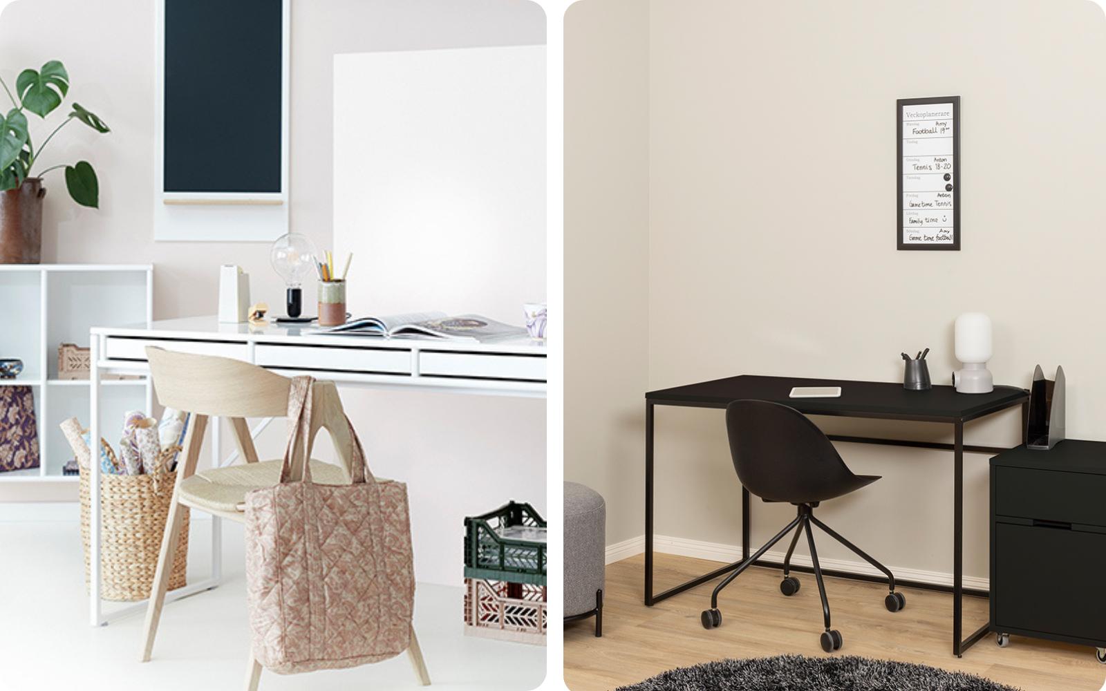 Ønsker du et separat rum til dit hjemmekontor? Så er der mange muligheder for at indrette et arbejdshjørne i et separat rum – selvom du har knap så meget plads 🤏 Har du ikke et separat rum, men generelt pladsmangel – så har vi også en løsning, bare rolig. Et skrivebord i stuen - ja, en arbejdsplads i stuen kan også sagtens fungere. Hvis du vælger et bord samt opbevaringsløsninger, der passer til stilen i rummet. Vælg smarte opbevaringsmøbler som reoler eller skænke, der ikke fylder for meget, men giver dig mulighed for at gemme arbejdsrodet væk – så skaber du et arbejdsværelse i hjemmet 🏠👩💻