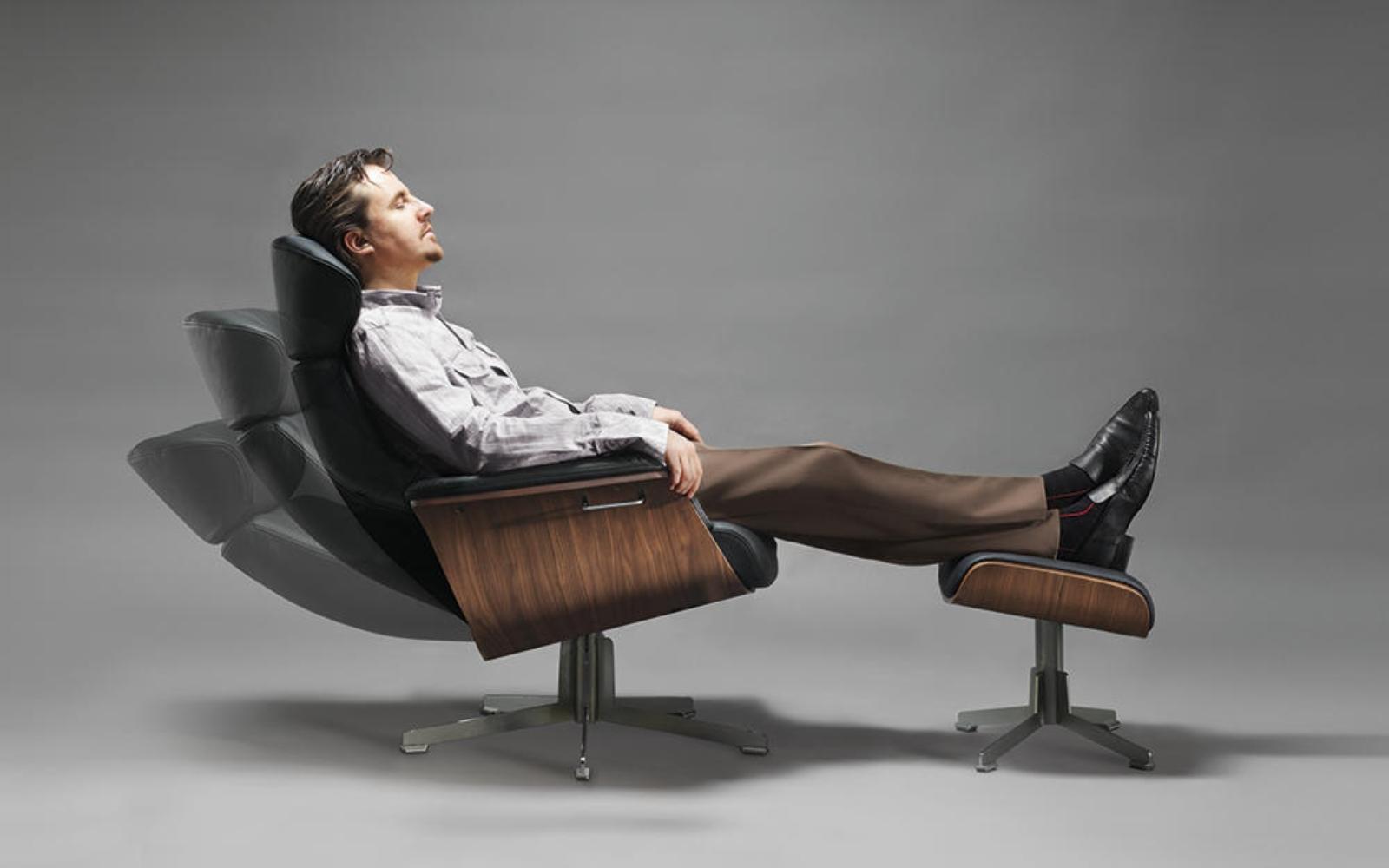 AfterWork er en lækker lænestol, der kan kombineres med en fodskammel, hvis du vil opleve ekstra behagelig komfort, når du slapper af i stuen.