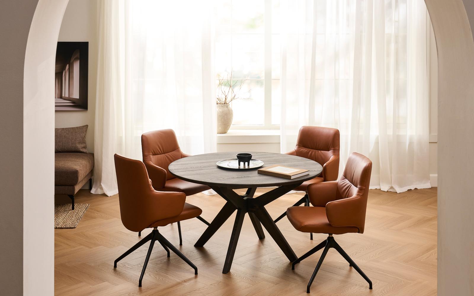 - Samhørighed omkring bordet: Et rundt spisebord vil qua sin runde form skabe den perfekte samhørighed omkring bordet. Alle har mulighed for at se hinanden i øjnene, og det giver anledning til dybe og personlige samtaler. Indretningen af din spisestue kan derfor med fordel tage udgangspunkt i det runde spisebord og dermed skabe rum til gode samtaler!