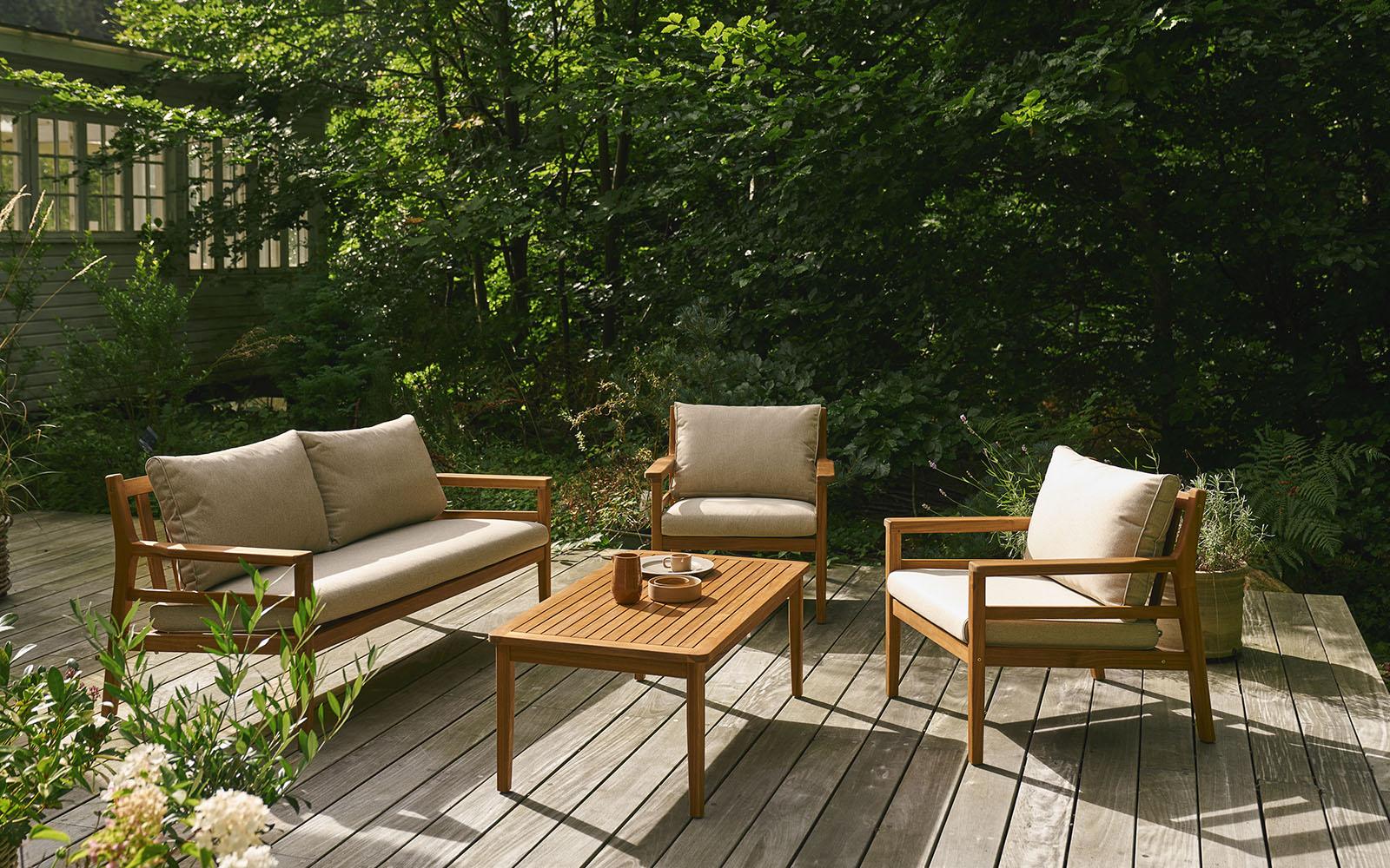 Ubehandlede havemøbler skal være af teaktræ for at kunne tåle at stå ude. Træet vil få en sølvgrå farve med tiden. Andre ædeltræsorter skal behandles med træolie eller anden beskyttelse for at kunne tåle at stå i haven. Træolie vil bevare farven på teaktræ. Skal havemøblet behandles, bør det ske inden det stilles ud. Derefter rengøres og efterbehandles en gang om året. Behandlingen bør foretages umiddelbart efter udpakningen, så der ikke kommer svampesporer og lignende fra træer og buske på møblet, det kan give mørke pletter, som senere kan blive vanskelige at fjerne.