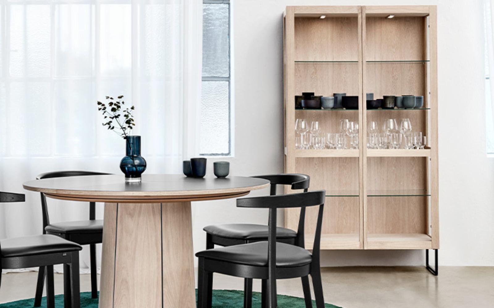 Det gør vi hos Møblér! Vi er meget stolte af vores samarbejde med Skovby, og du finder både spiseborde, spisebordsstole, skænke, vitrineskabe, sofaborde og andre meget smukke kvalitetsmøbler.
